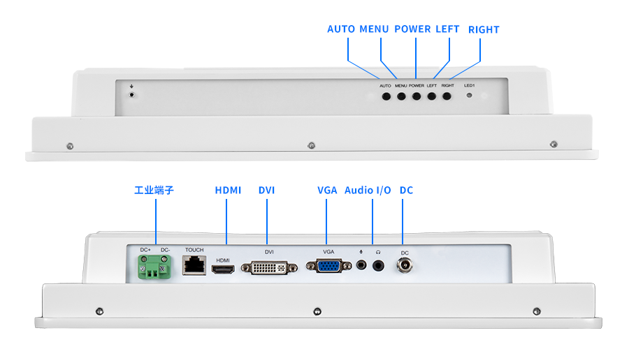 设计上,工规医疗触控显示设备采用高精度铝合金打造,白色外壳,匹配医疗机构安静、沉稳风格,圆润边角,中正协调,严格遵循医疗设备设计要求,展现出理性、安全、严谨风格,让人有压力缓解的感觉。