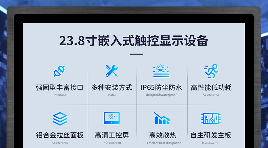 23.8寸嵌入式设备的推出,就是为了拓宽应用场景并满足更大型设备的匹配需要。