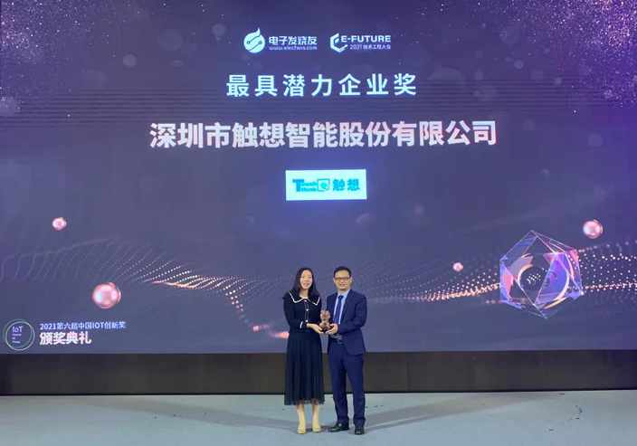 12月10日,在第六届中国“IOT”创新奖颁奖晚会在深圳深铁皇冠假日酒店举办,触想智能夺得“最具潜力企业奖”。该奖项由知名的电子科技媒体电子发烧友主办,旨在挖掘和表彰IOT行业中具有开拓精神、具有创新价值和深远影响的杰出技术,以及过去一年中,被市场和行业用户高度关注和认可的创新产品及企业。