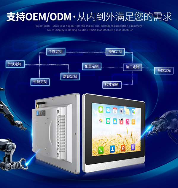 由于各行业使用的触控自动化设备运用于不同的环境,要求其具有很强的环境适应能力。可据客户的实际使用环境,进行定制化设计和生产,为客户提供技术最先进、性能最匹配的显示设备,可满足适应于各种复杂恶劣的工业环境需求。