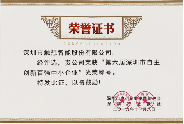 可以说,本次触想智能收获“第六届深圳市自主创新百强中小企业”称号是实至名归!未来,我们将不忘初心,继续坚持以自主创新为中心,不断进一步实现和积累自身更有特色的核心竞争力,让核心自主创新研发实力成为公司更坚实的竞争“铠甲”!