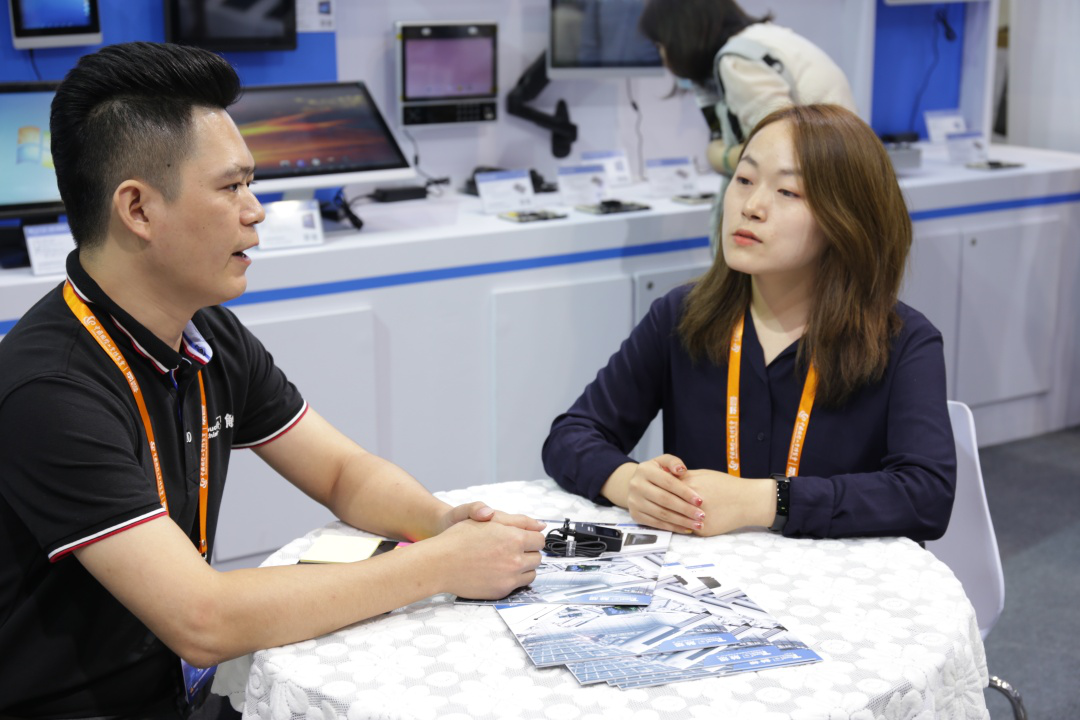 依旧是讲解触想平板电脑的小哥们,人有点多,那边工控机的主场也要开始了。这里不得不提一下本次触想的参展天团们,懂产品会销售女靓男帅热情满满还非常专业,没去现场是你们的损失。